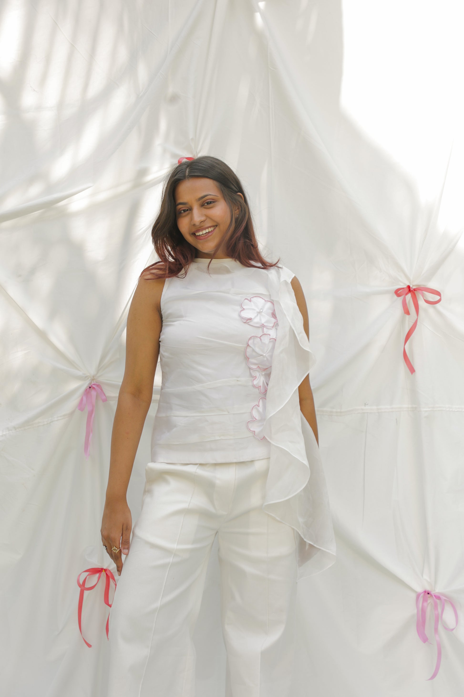 - Hand embroidered flowers